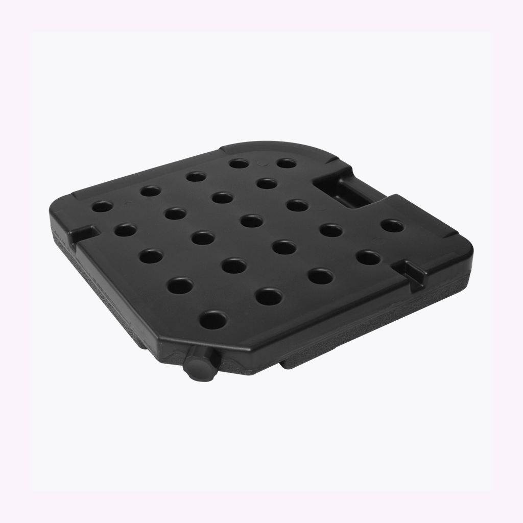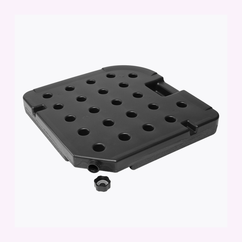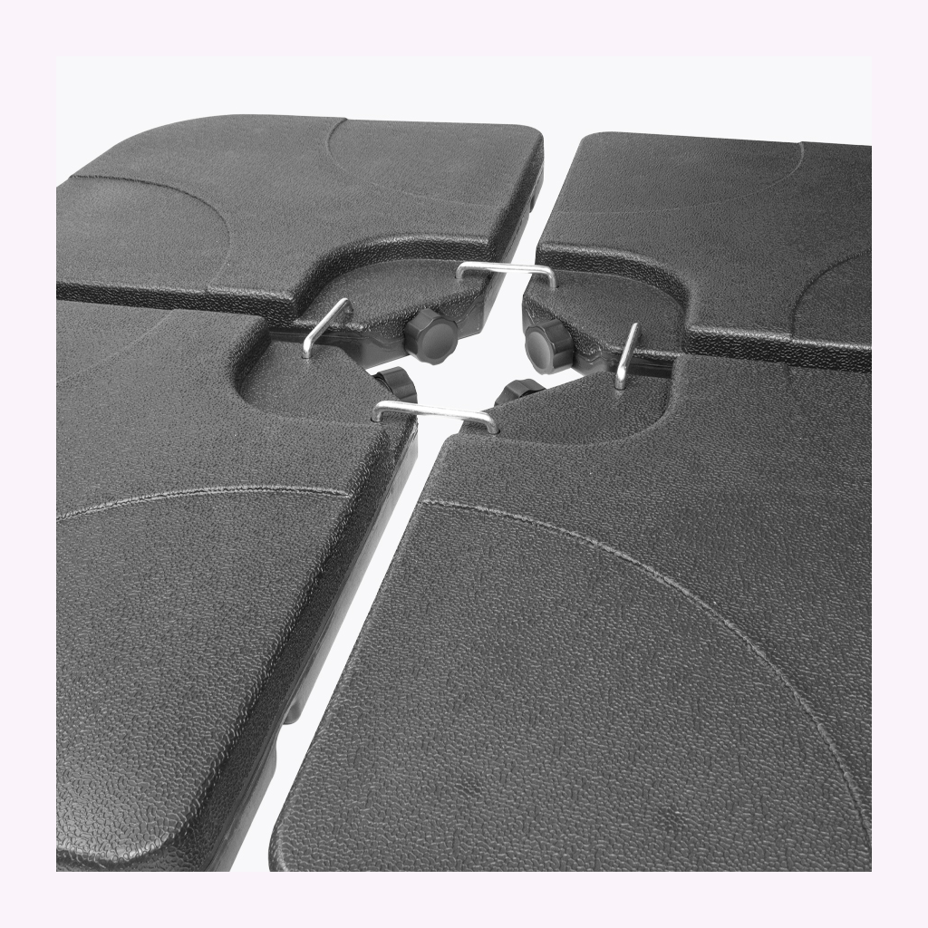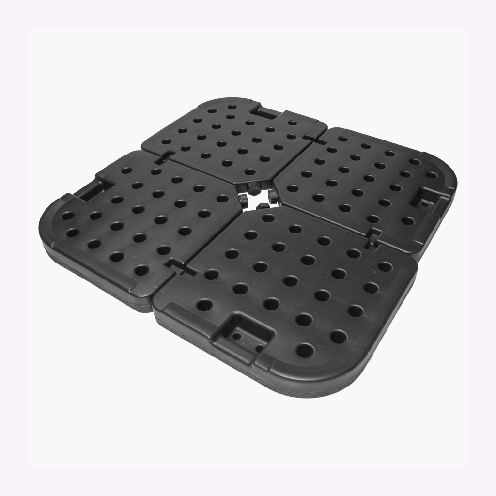 Set de 4 bases plásticas cuadradas rellenables (con arena o piedrecilla, para darle mayor peso), con una capacidad total de 60kg