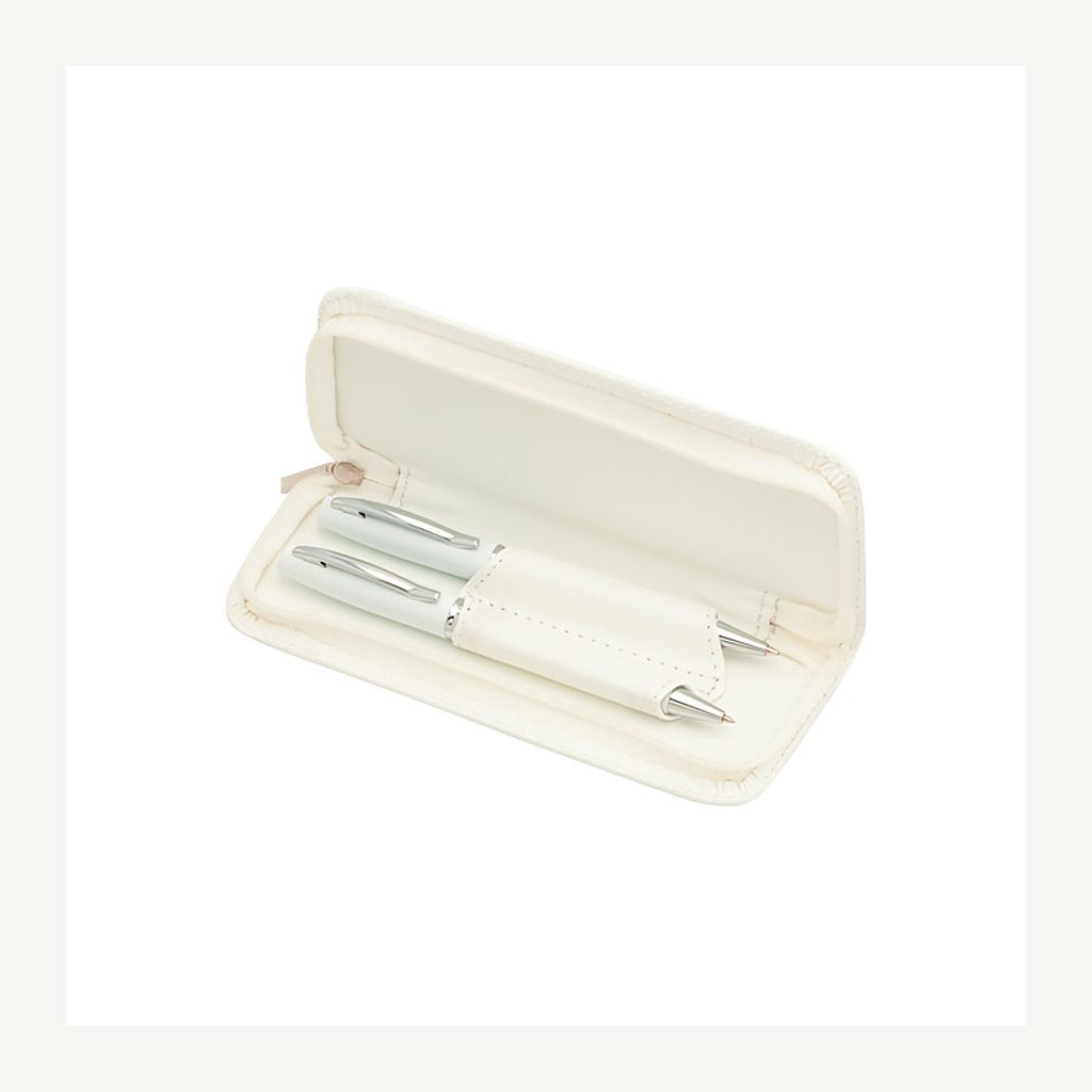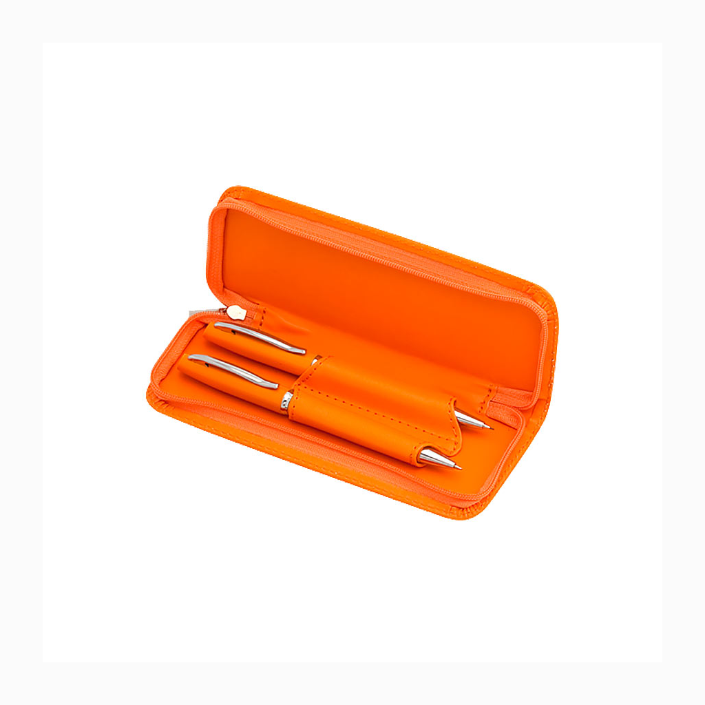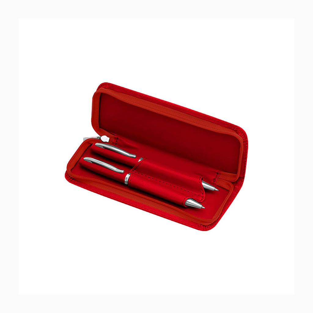 Set de Escritura «Finit». Incluye Bolígrafo Metálico + Portaminas Metálico. Minas 0.7mm incluidas. Presentación en fino estuche simil cuero.