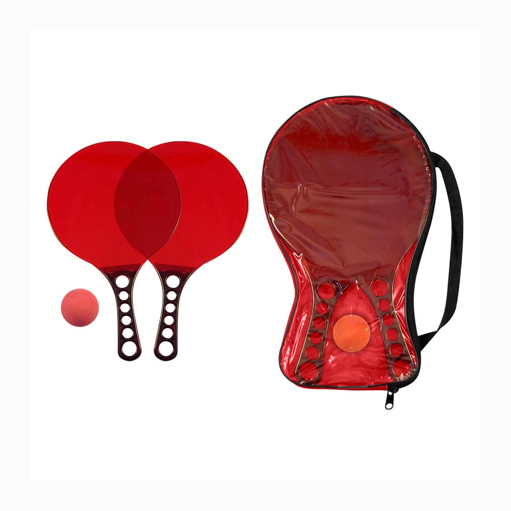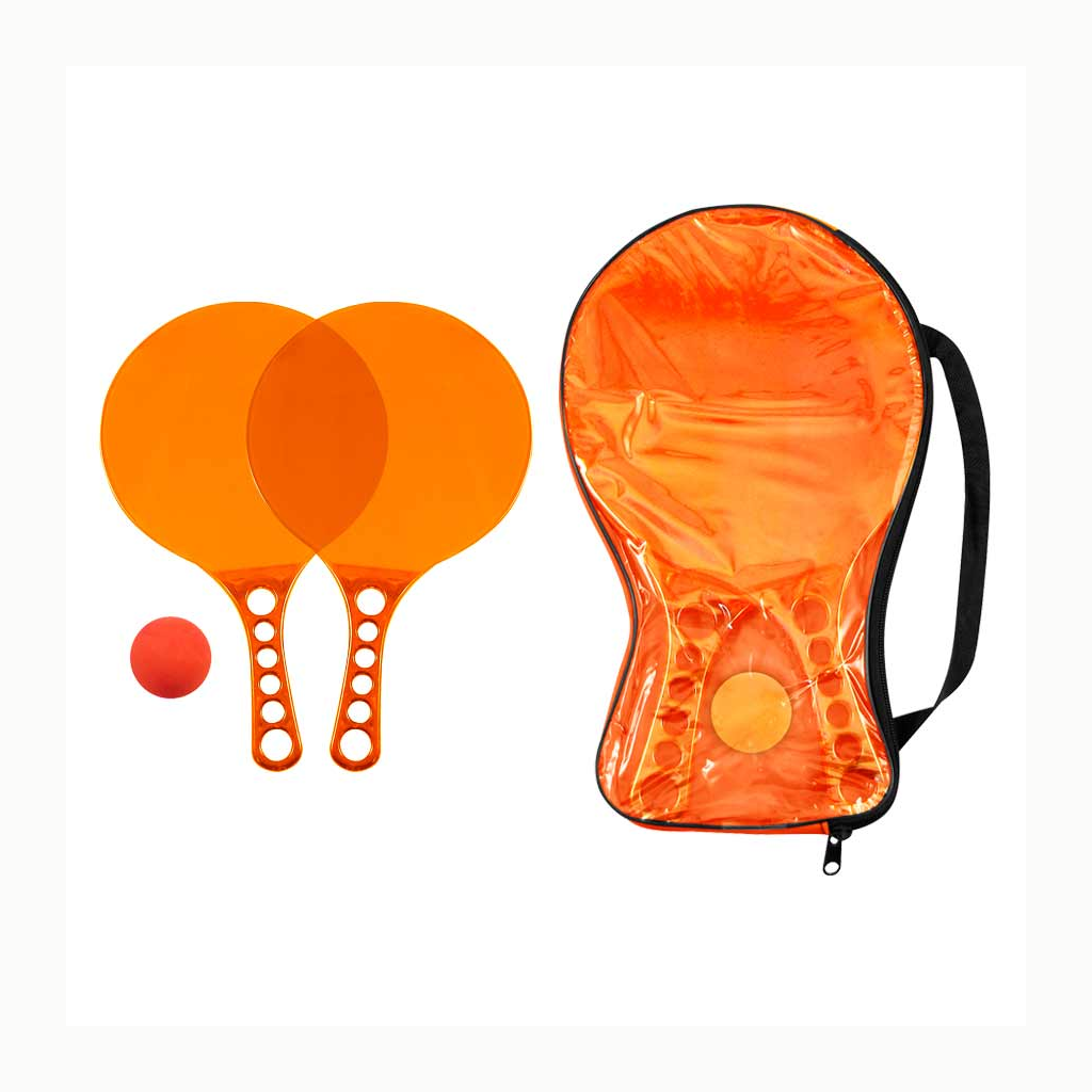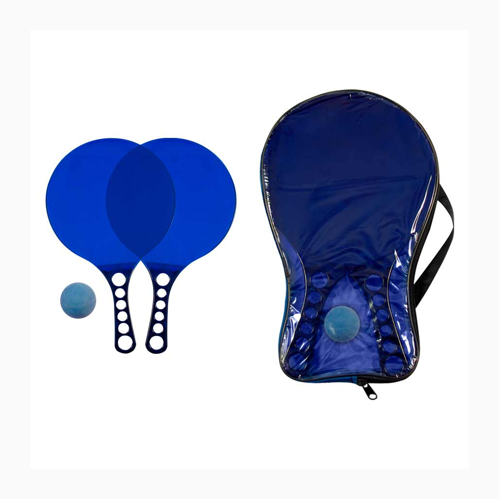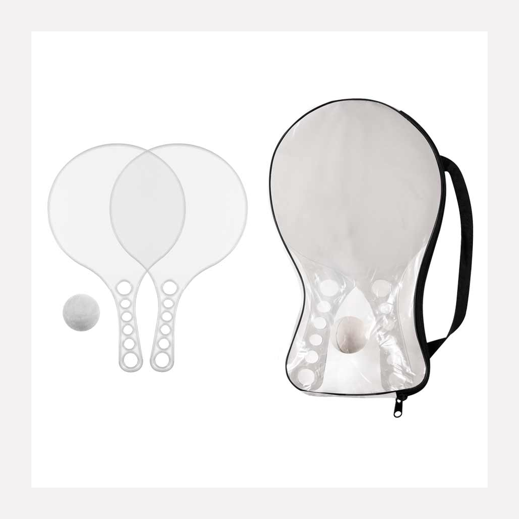 Set de Paletas de Playa de Acrílico de color Traslúcido, incluye estuche de PVC y pelotita de goma.
