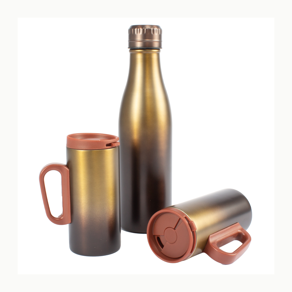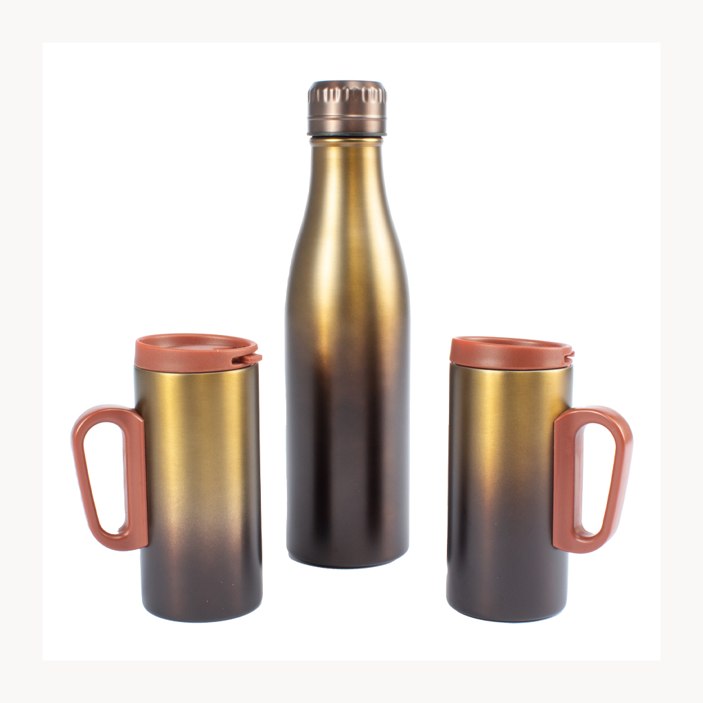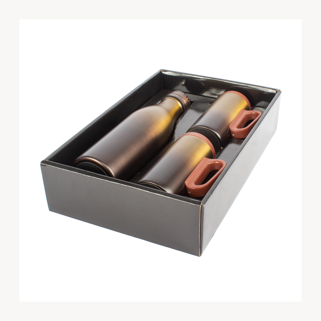 Set de 2 tazones 250cc. + termo 500cc, de Acero Inoxidable, en caja de cartón color negro.