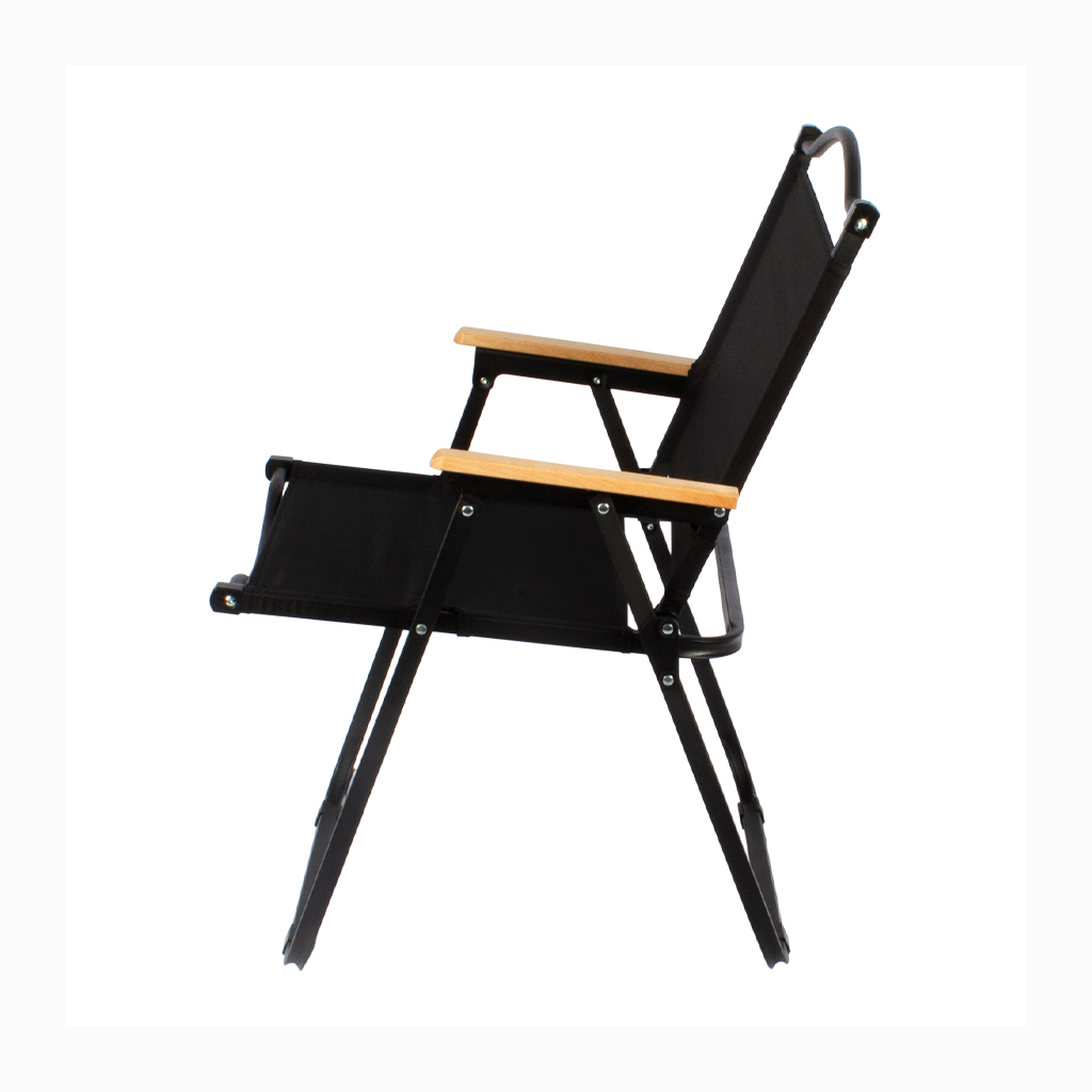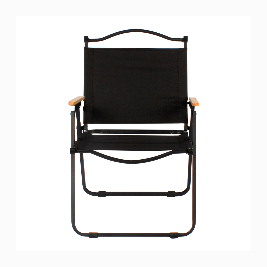 Silla de Camping y Playa de lona, tela Oxford 600D raquelada y base plegable de Acero negro de 20 x 15 x 1mm, con apoya-brazos de madera de Haya. Un práctico producto para ir de camping o a la playa.