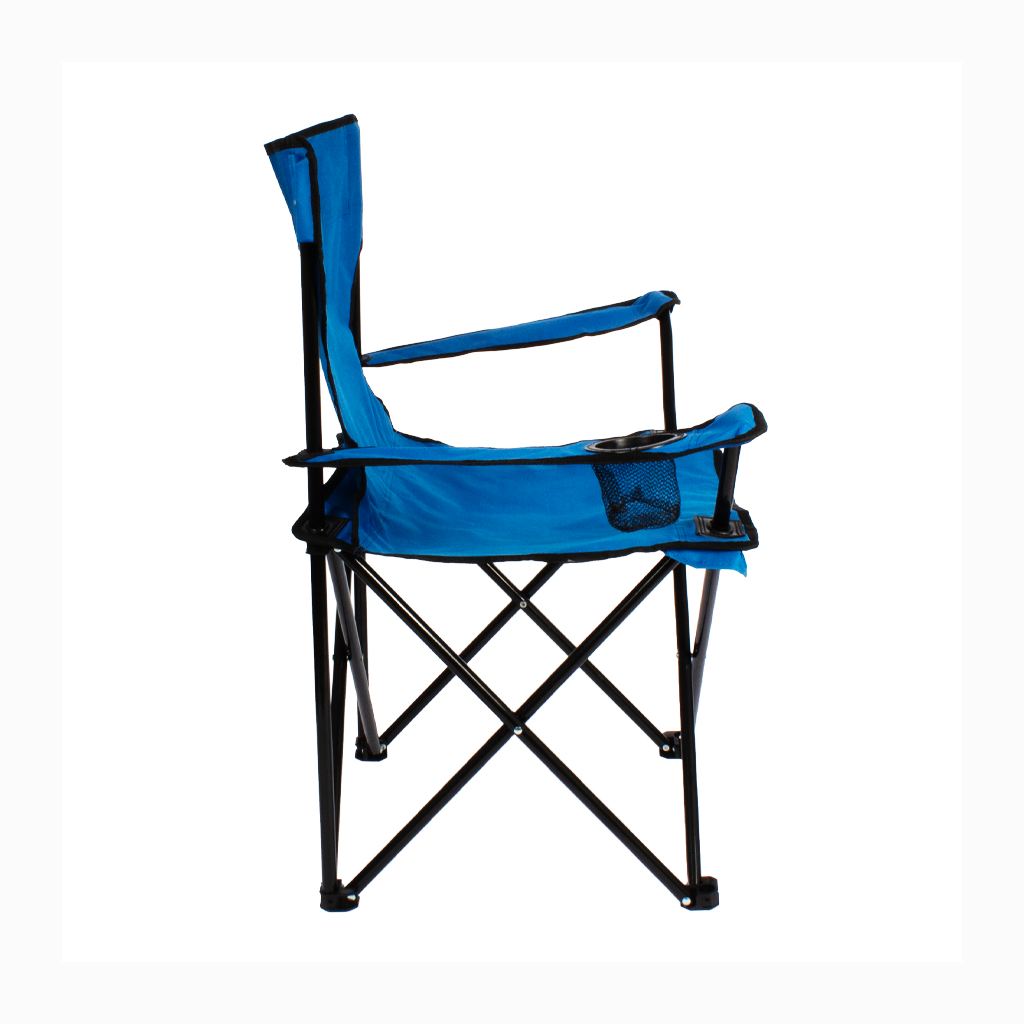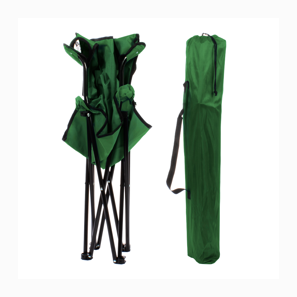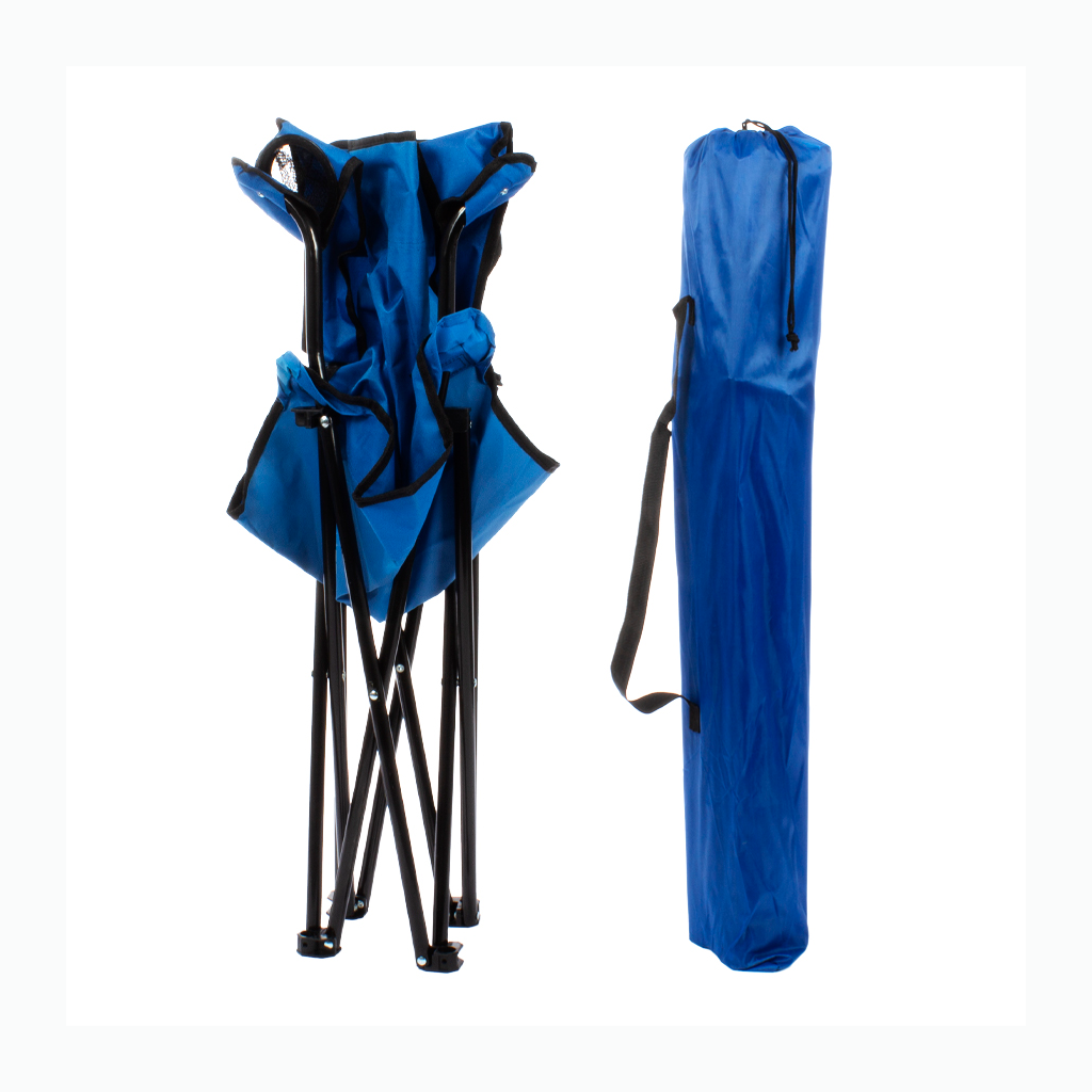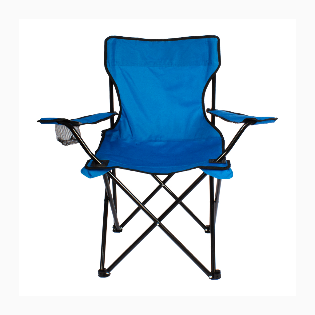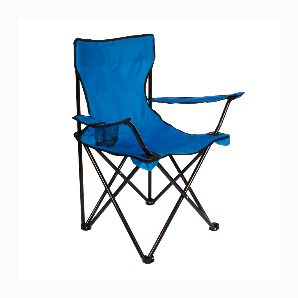 Silla de Camping en tela Oxford 600D raquelada y base plegable de Acero negro 16mm, con apoya-brazos y posa-vaso. Incluye bolso funda tubular de tela poliéster Ripstop 210D, con tanka y colgador. El regalo ideal para ir de camping o a la playa.