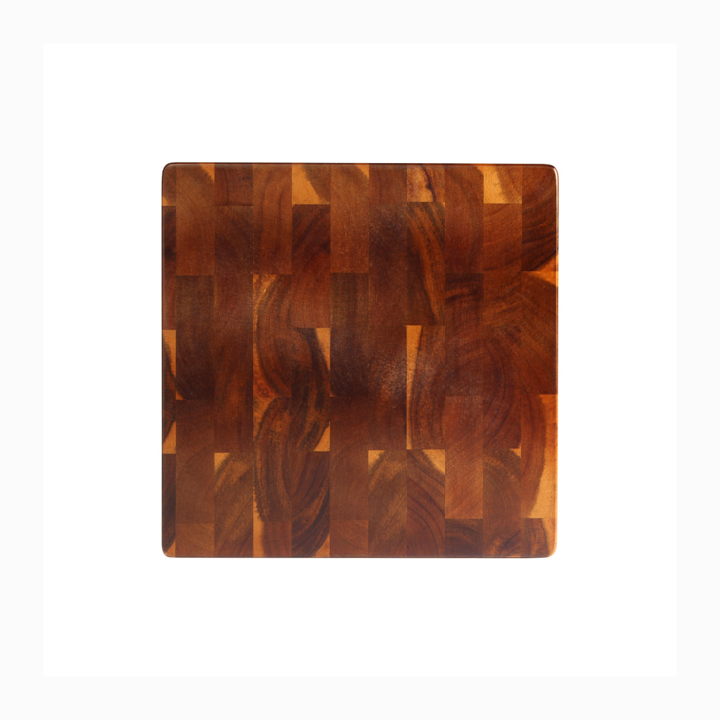 Fina tabla cuadrada de madera sólida de ACACIA con piezas integradas, diseño único para sorprender! Ideal para cortar y/o servir verduras, quesos, frutos secos o picoteo. Madera trabajada y acabada en máquina, de forma 100% regular, con superficies, laterales y cantos suaves y redondeados, para una mayor higiene y comodidad al momento de cortar y servir alimentos. La Acacia, junto con la Teca, es considerada la mejor, más dura y más resistente madera para utilizar para cortes de alimentos – Densidad aprox. 770kg/m3. – Dureza 9.5 (test de Monnin)