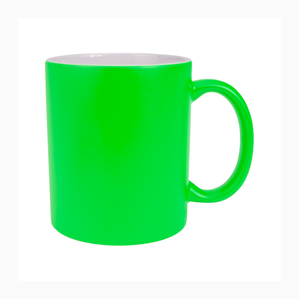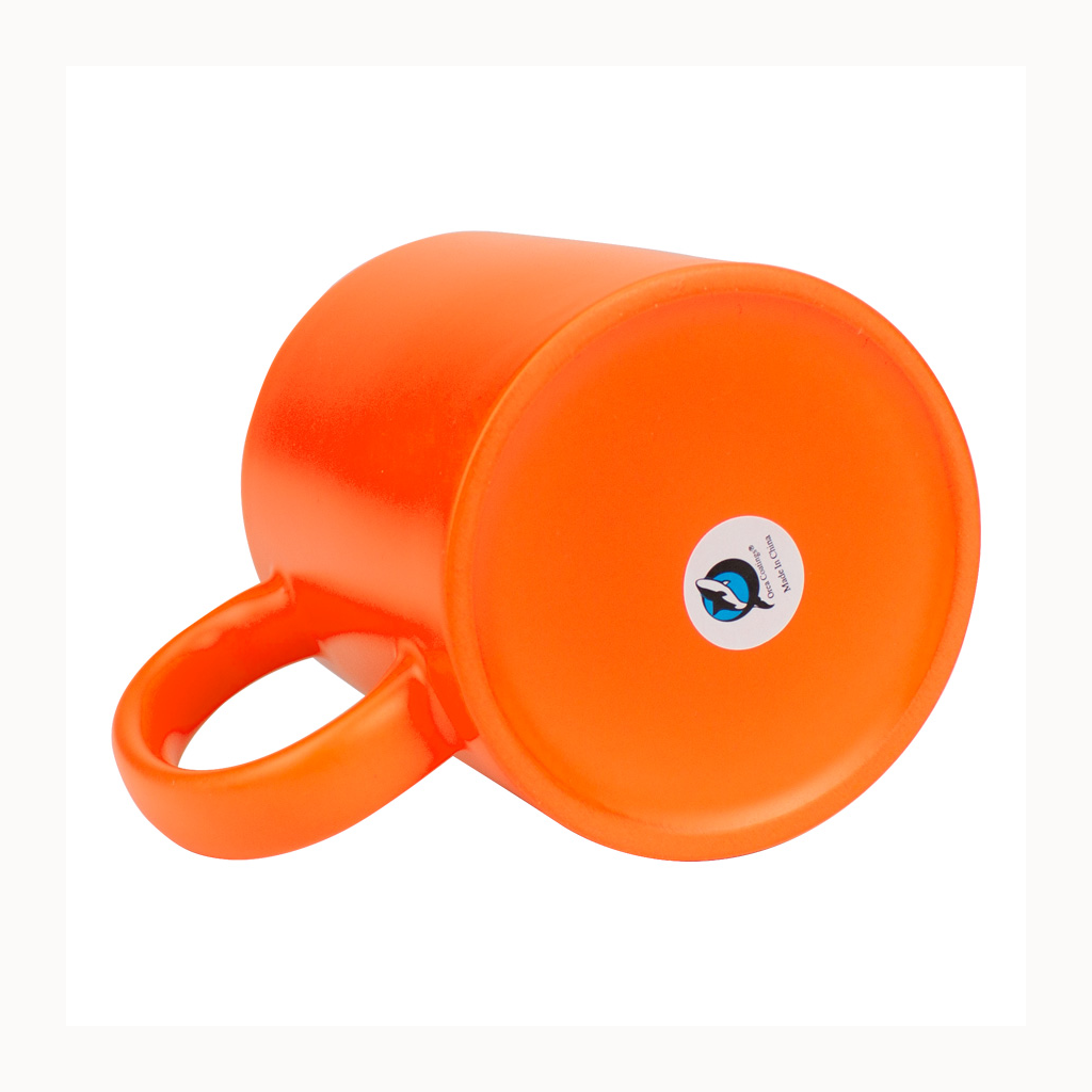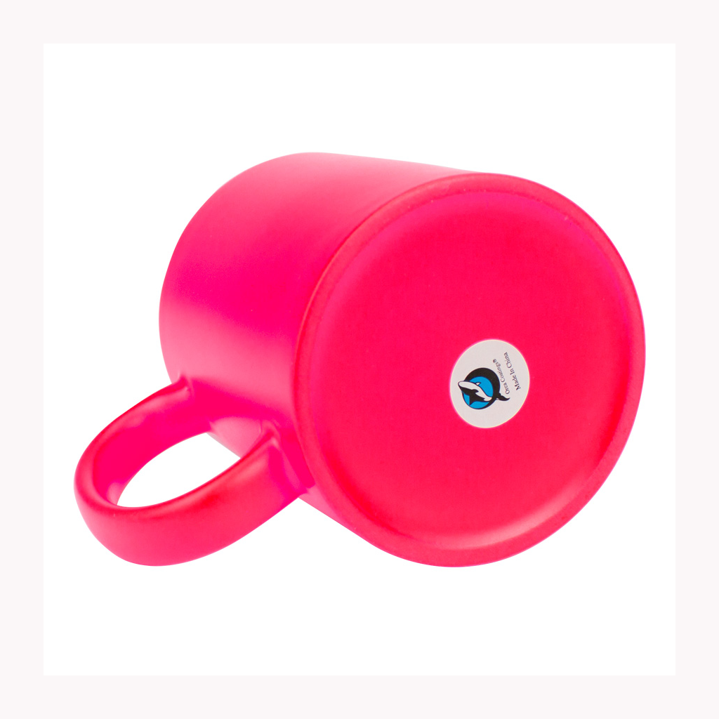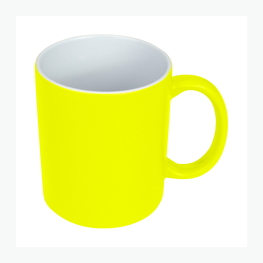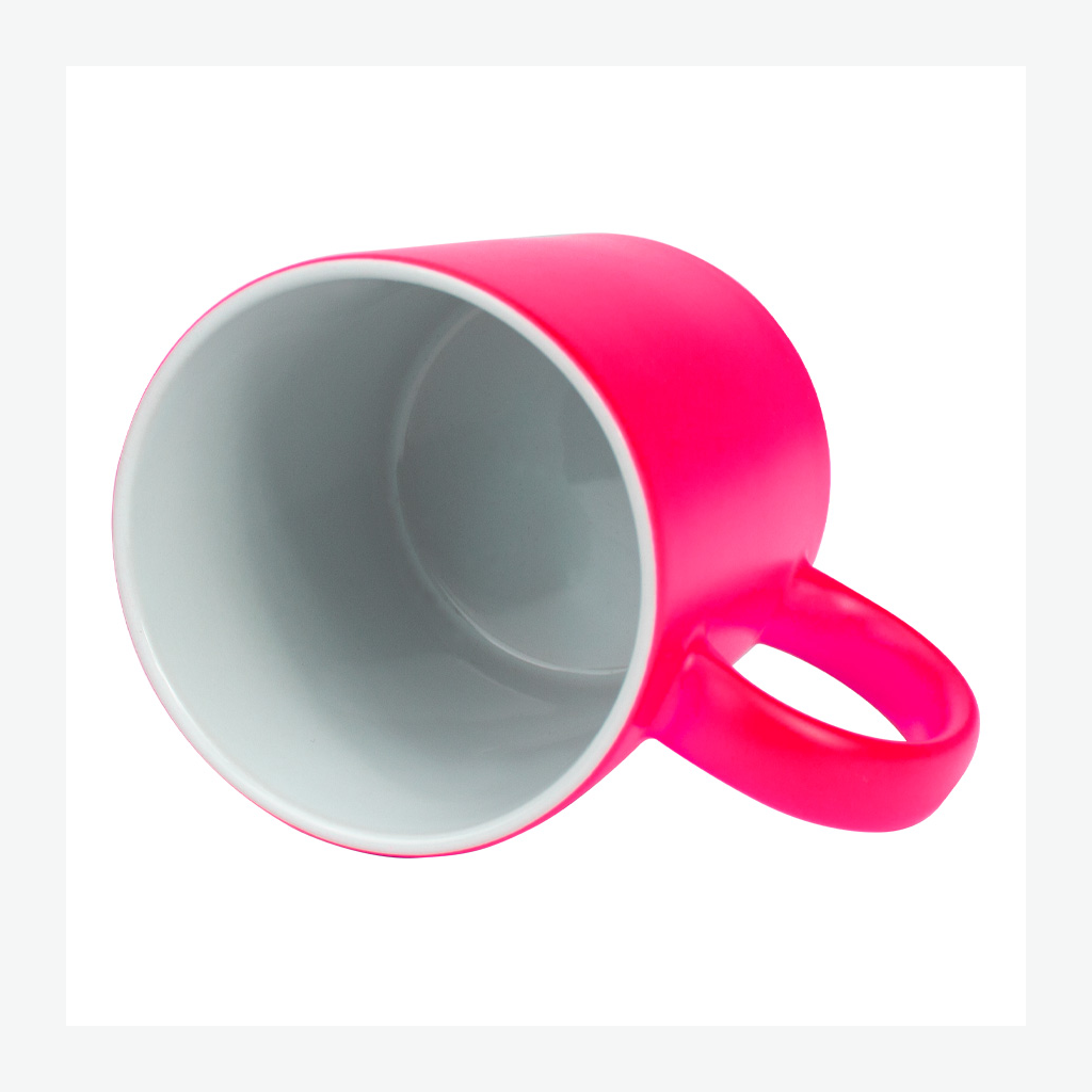 Tazón cerámico de 11oz (330 cc) con superficie exterior de color fluorescente, interior blanco, para Sublimación. Producto de calidad superior ORCA. Presentación en bolsa plástica translúcida + caja de cartón blanco.