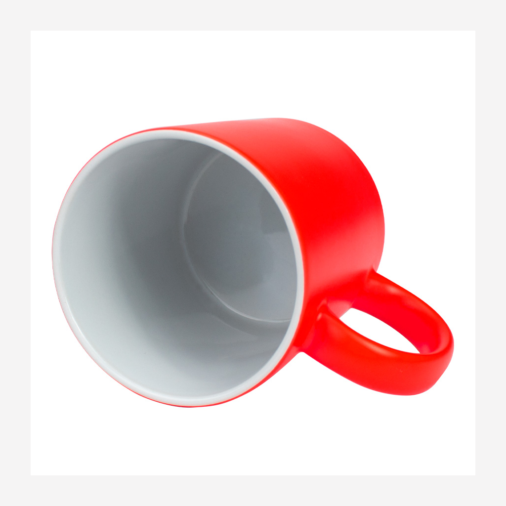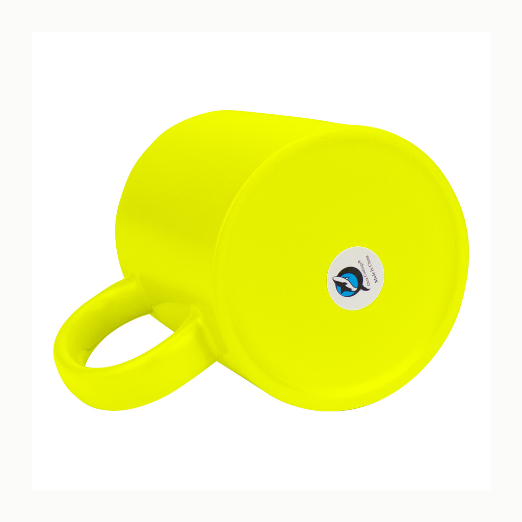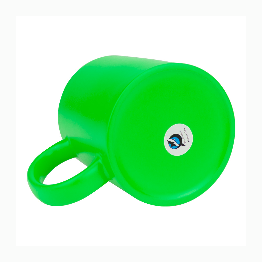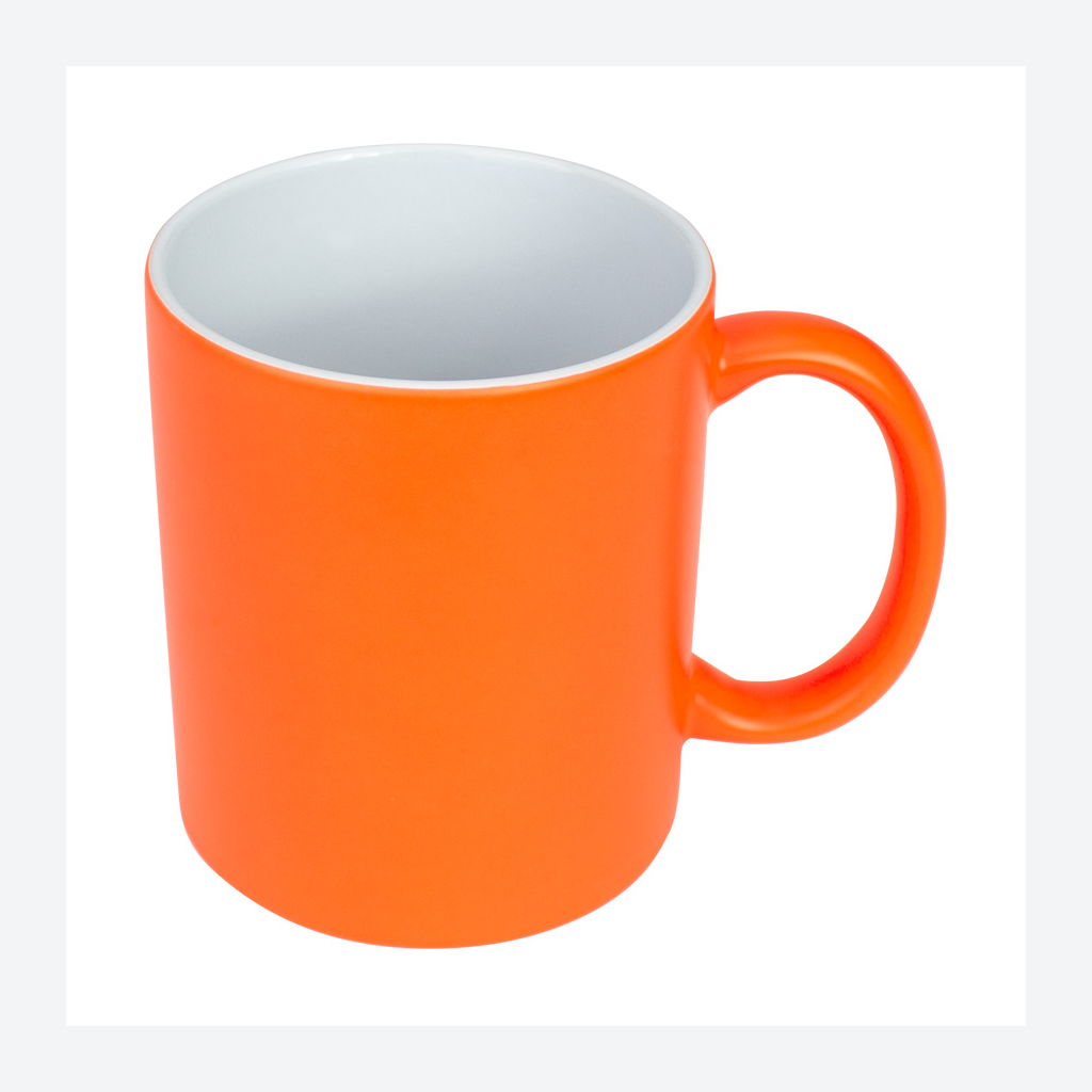 Tazón cerámico de 11oz (330 cc) con superficie exterior de color fluorescente, interior blanco, para Sublimación. Producto de calidad superior ORCA. Presentación en bolsa plástica translúcida + caja de cartón blanco.