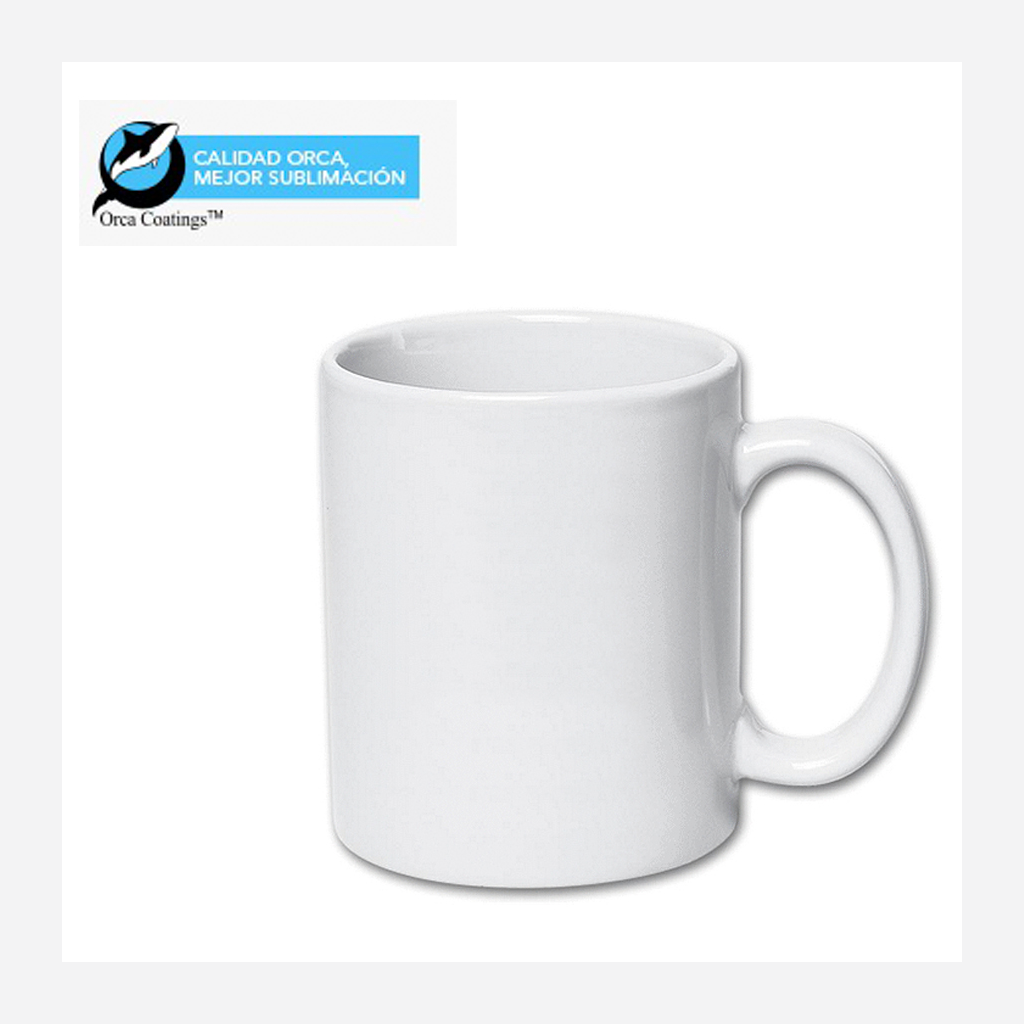 Tazón Cerámico extra-blanco. Cobertura exterior con polímero especial marca ORCA COATINGS(R) para una sublimación de primera calidad. Cada unidad se entrega dentro de su caja individual de cartón blanco.