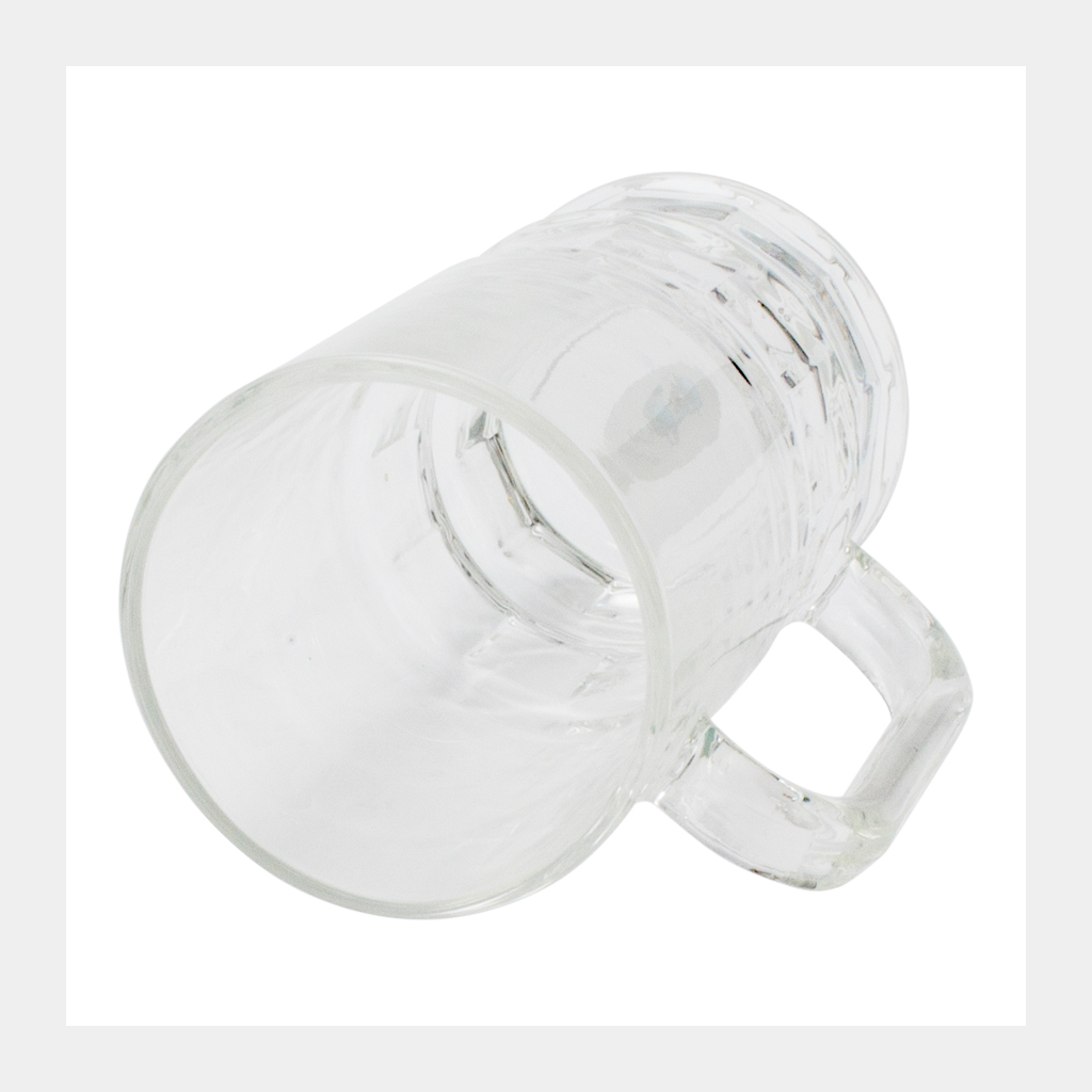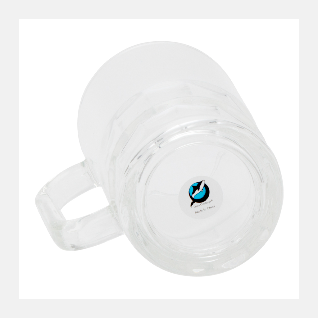 Tazón Cervecero de Vidrio, para Sublimación, para líquidos fríos, con asa. Capacidad 400 ml. Presentación bolsa plástica empavonada + caja de cartón blanco. Calidad Premium ORCA.