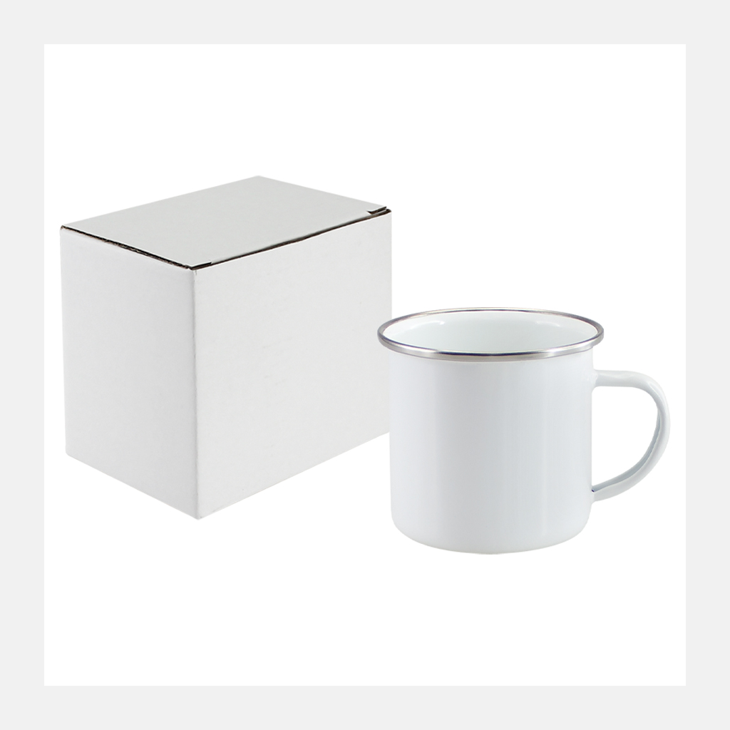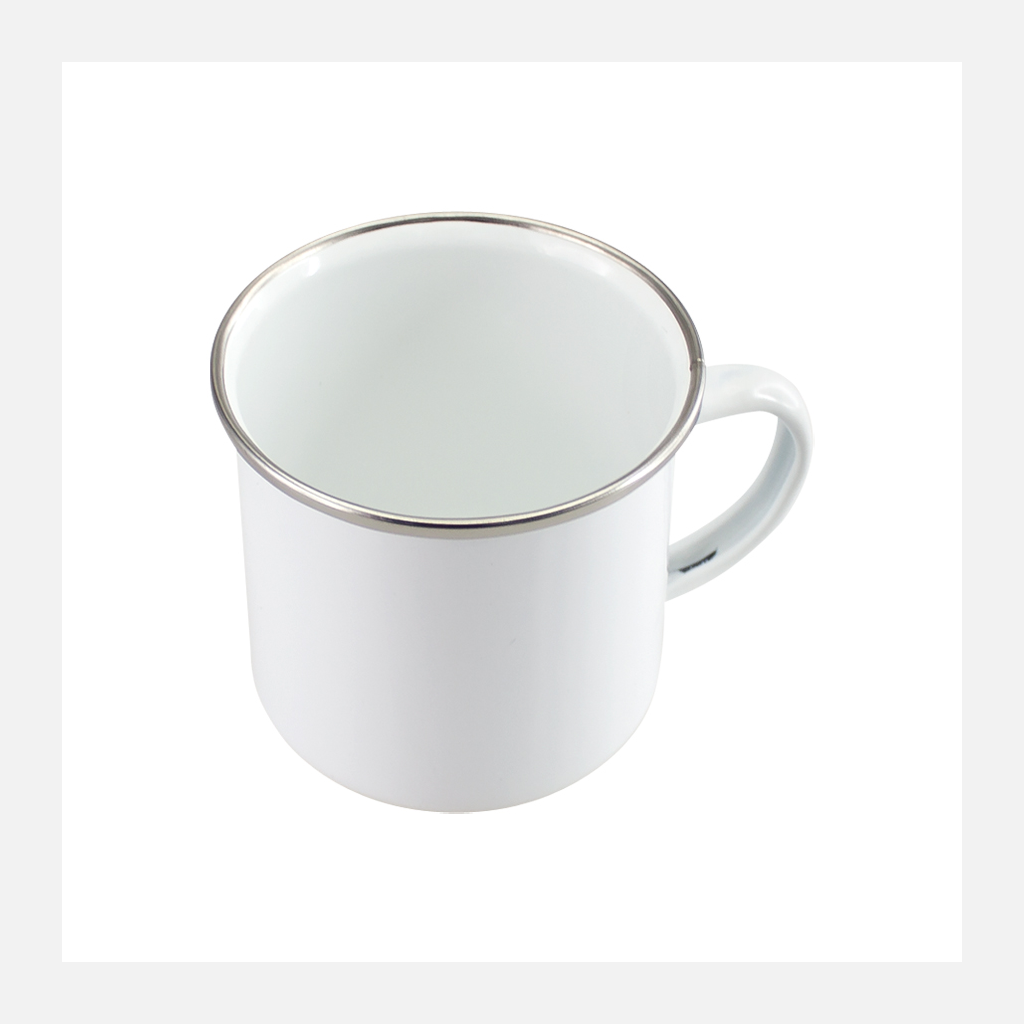 Tazón de acero enlozado «Enamel» de 350cc. con cobertura para Sublimación. Único con borde de Acero Inoxidable, que entrega higiene y protección al contacto con tu boca.