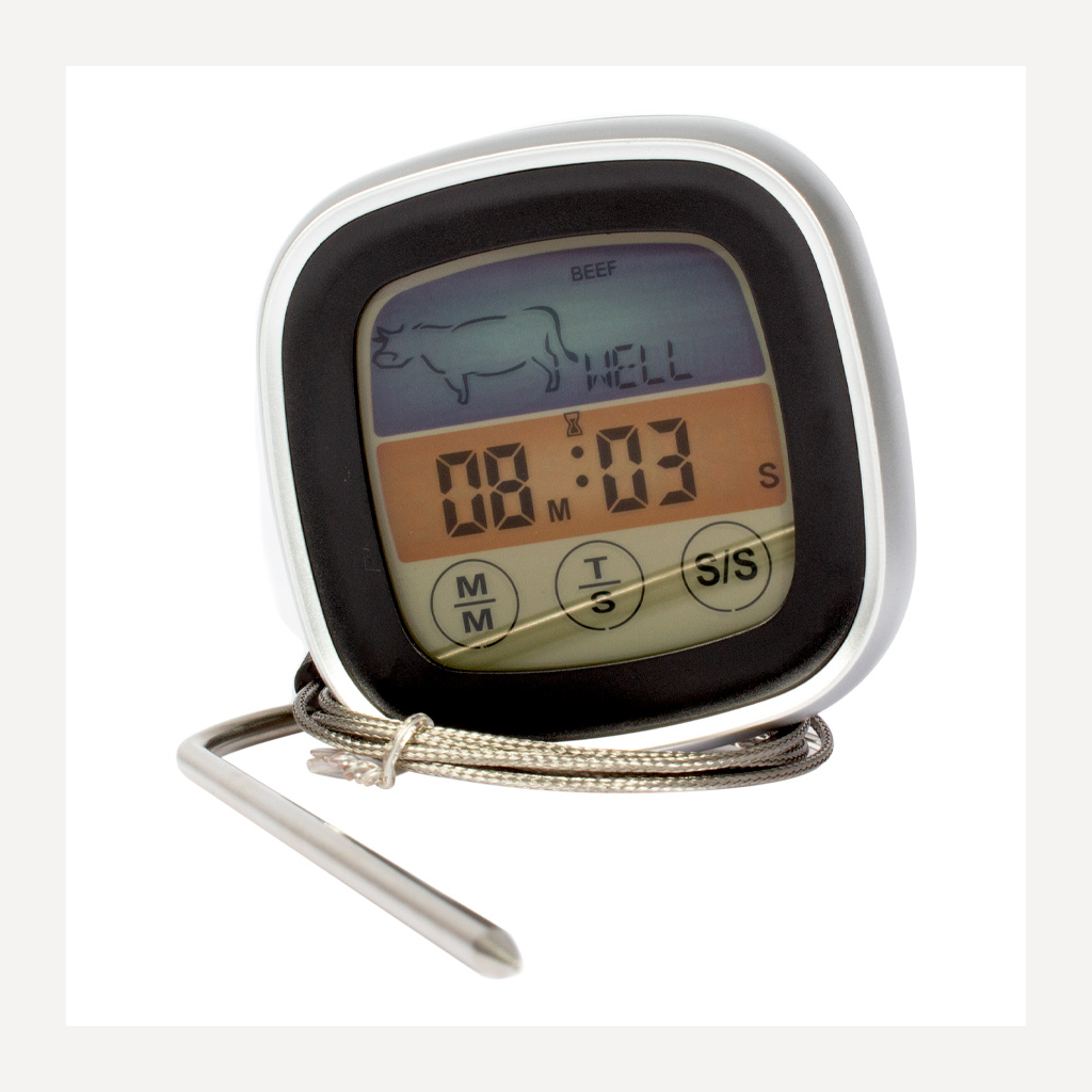 Termómetro Digital para Carne con timer y funciones en °C o °F. Resistente al calor hasta 250°C (482°F)