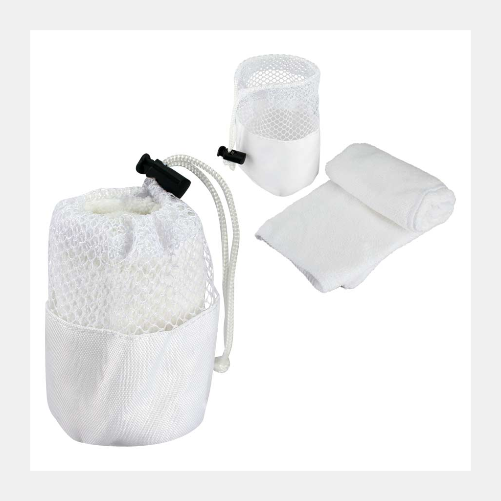 Toalla facial en tela Microfibra para Sublimación. Presentación dentro de bolsito de poliéster con malla.