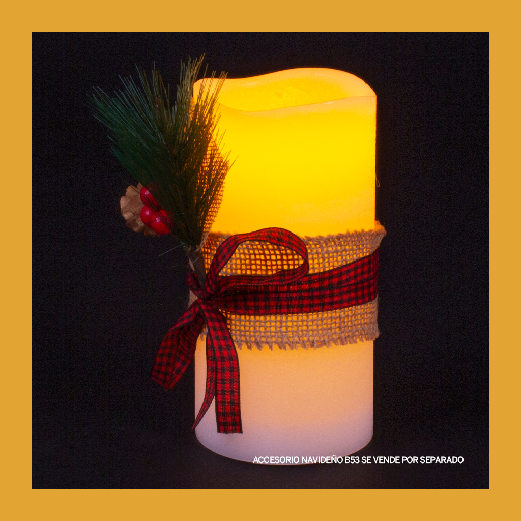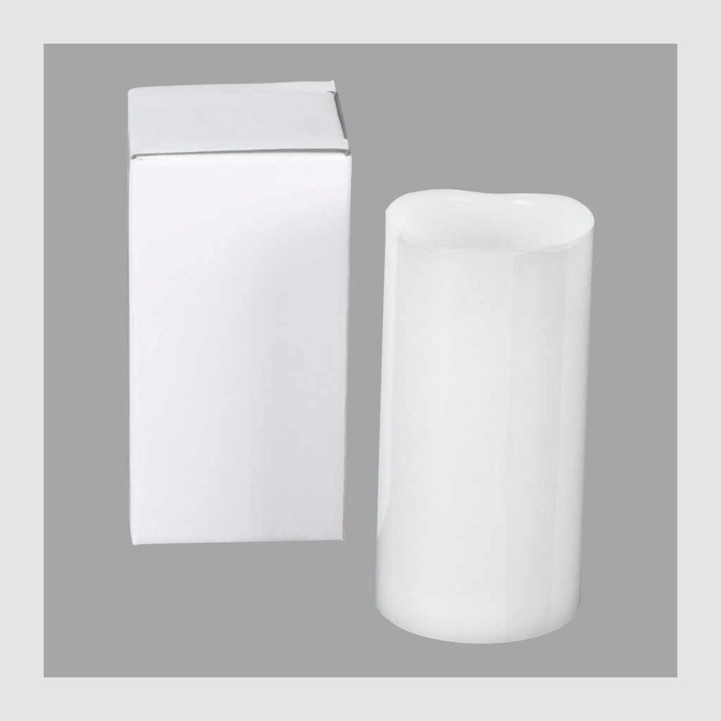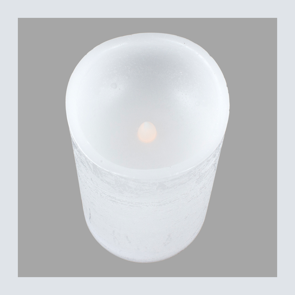 Vela blanca de Parafina, tamaño 15 x 7.3 cm. Con luz cálida LED.